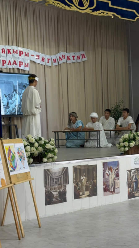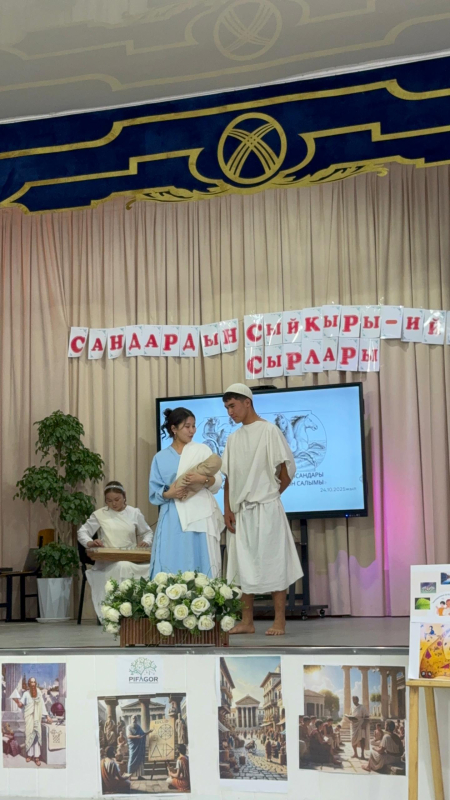 Иш-чаранын алкагында окуучулар Байыркы Греция доорун, Пифагордун жашоо жолун жана Софья Ковалевская менен “Убакыт көпүрөсү” аркылуу болгон символикалык жолугушуусун сахналаштырып көрсөтүштү.