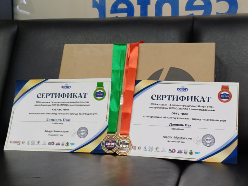Профессор А. Молдокулов атындагы Улуттук инновациялык технологиялар мектеп-лицейинин 11-Г классынын окуучусу Пак Даниэль республика боюнча 1–11-класстардын окуучулары арасында өткөрүлгөн «ZEEN» интеллектуалдык олимпиадасында жогорку жыйынтыкты көрсөттү.