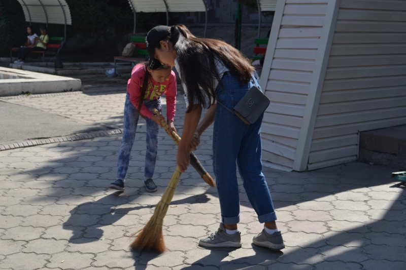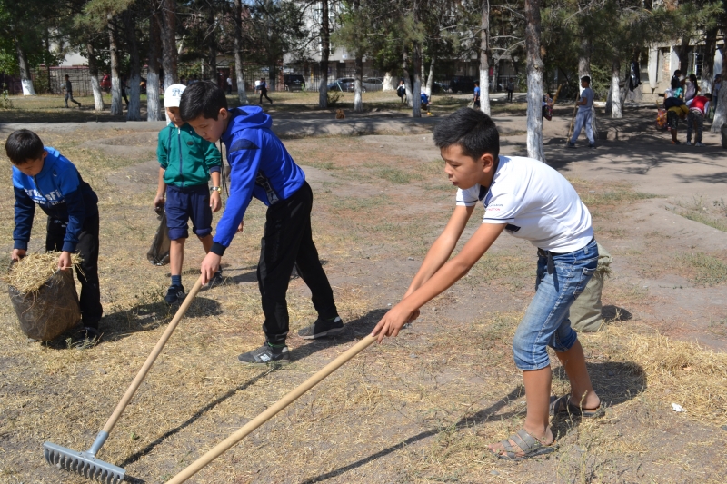 Гимназиянын окуучулары да жаш курактарына жараша өздөрүнө атайын бөлүнгөн жерлерди - мектептин ичин, ички короосун, мектептин сыртын тазалап, билим уясынын айланасын акыр-чикирден, күздө түшкөн жалбырактардан тазалоого активдүү катышты.
