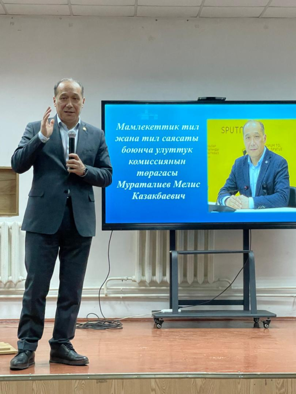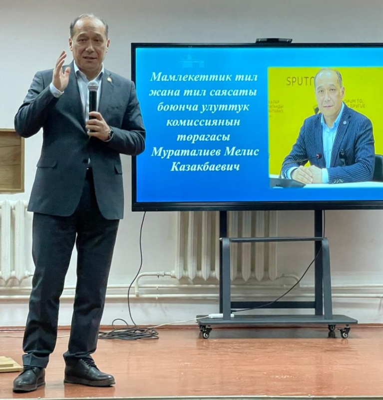 Кыргыз Республикасынын Президентине караштуу Мамлекеттик тил жана тил саясаты боюнча улуттук комиссиянын төрагасы Мураталиев Мелис Казакбаевич 8-11-класстын окуучулары үчүн “Мамлекет жана маданият деген эмне?” аталышындагы лекция сабагын өтүп берди. Ал өз сөзүндө "Маданият менен мамлекет бири-биринен ажыратып кароого мүмкүн болбой турган тутум. Ар кандай маданий ишмердүүлүк жана ошого жараша маданиятка салынган ар кандай инвестиция сөзсүз социалдык-экономикалык эффектке ээ жана бүтүндөй коомго пайда алып келет. Кыргыз элинин улуттук кызыкчылыктарын ишке ашырууда маданиятты мамлекеттүүлүктүн негизи, коомдук туруктуулуктун, экономикалык өсүштүн жана улуттук коопсуздуктун ресурсу катары жаңыча түшүнүү керек. Өз улутубуздун маданиятын көтөрүүдө өз эне тилибизди кадырлап, күнүмдүк турмушубузда адабий тилде баарлашууга басым жасоо менен билимдүүлүккө умтулуу зарыл" –деп белгиледи. Окуучулар үчүн беделдүү инсандардын сабак өтүүсү окуучулардын илим-билимге болгон кызыгууларын ойготуп, шыктандырууну жаратты.