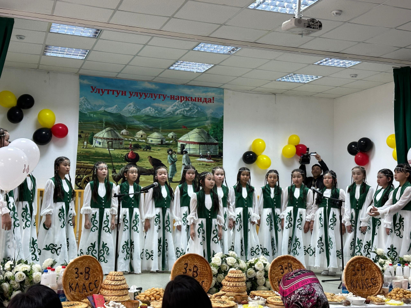 «Улуттун улуулугу — наркында» аталышындагы 3-«В» классы өткөргөн маданий тарбиялык иш-чара чыныгы улуттук рухтун майрамы болду! “Манас” эпосунан үзүндү айтылып, кыргыз элинин улуулугун даңазалаган ырлар музыканын коштоосунда жаңырып, кыздардын “Сыйкырдуу куш” бийи жомоктогудай кооздукту тартуулады.