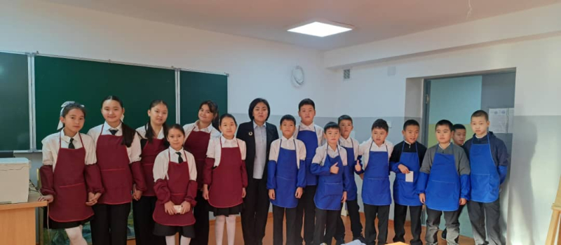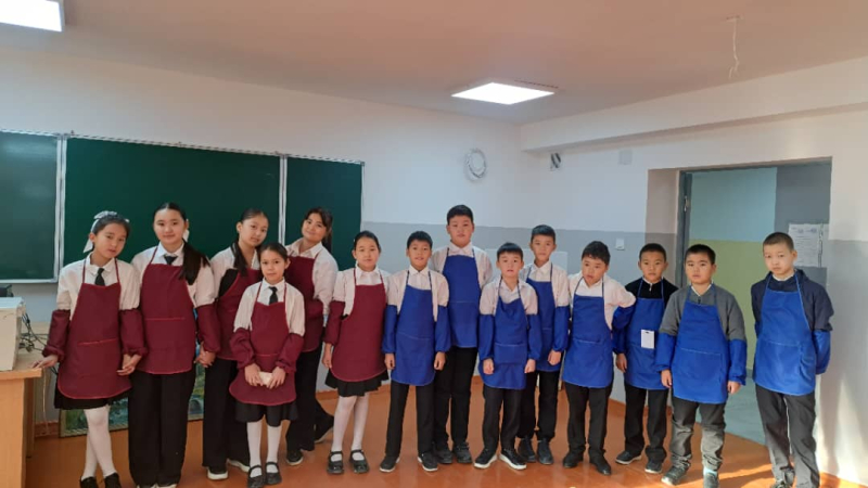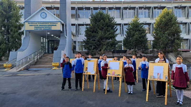 Бүгүн 5-Е класстын окуучулары менен көркөм өнөр жана технология предметтери боюнча интеграцияланган практикалык сабак мектептин ачык асман алдындагы чөйрөсүндө уюштурулду.