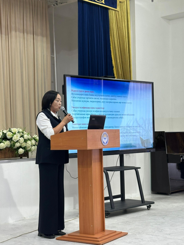 "Ата-эне менен мектептин бирдиктүү иши-ийгиликтүү окуучунун ачкычы" аталышындагы 2025-2026-окуу жылынын алгачкы жалпы ата-энелер жыйыны мектеп-лицейдин 1-корпусунда уюштурулду. Анда 2024–2025-окуу жылында аткарылган иштердин анализи, 12 жылдык билим берүү системасынын өзгөчөлүктөрү, «Э-Күндөлүк» платформасын пайдалануудагы мүмкүнчүлүктөр, мектеп-лицейдин ички тартип эрежелеринин аткарылышы жана өспүрүмдөр арасындагы коопсуздукту максаттуу камсыздоо багытында маселелер талкууланды.