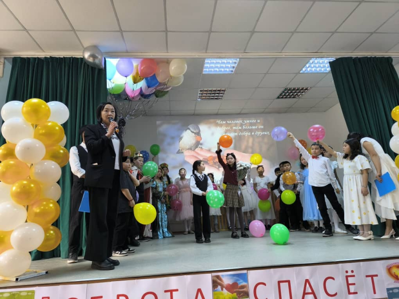 Башталгыч класстын окуучулары «Жакшылык ар дайым жеңет» деген идеянын алкагында жомок менен өз таланттарын тартуулашты.